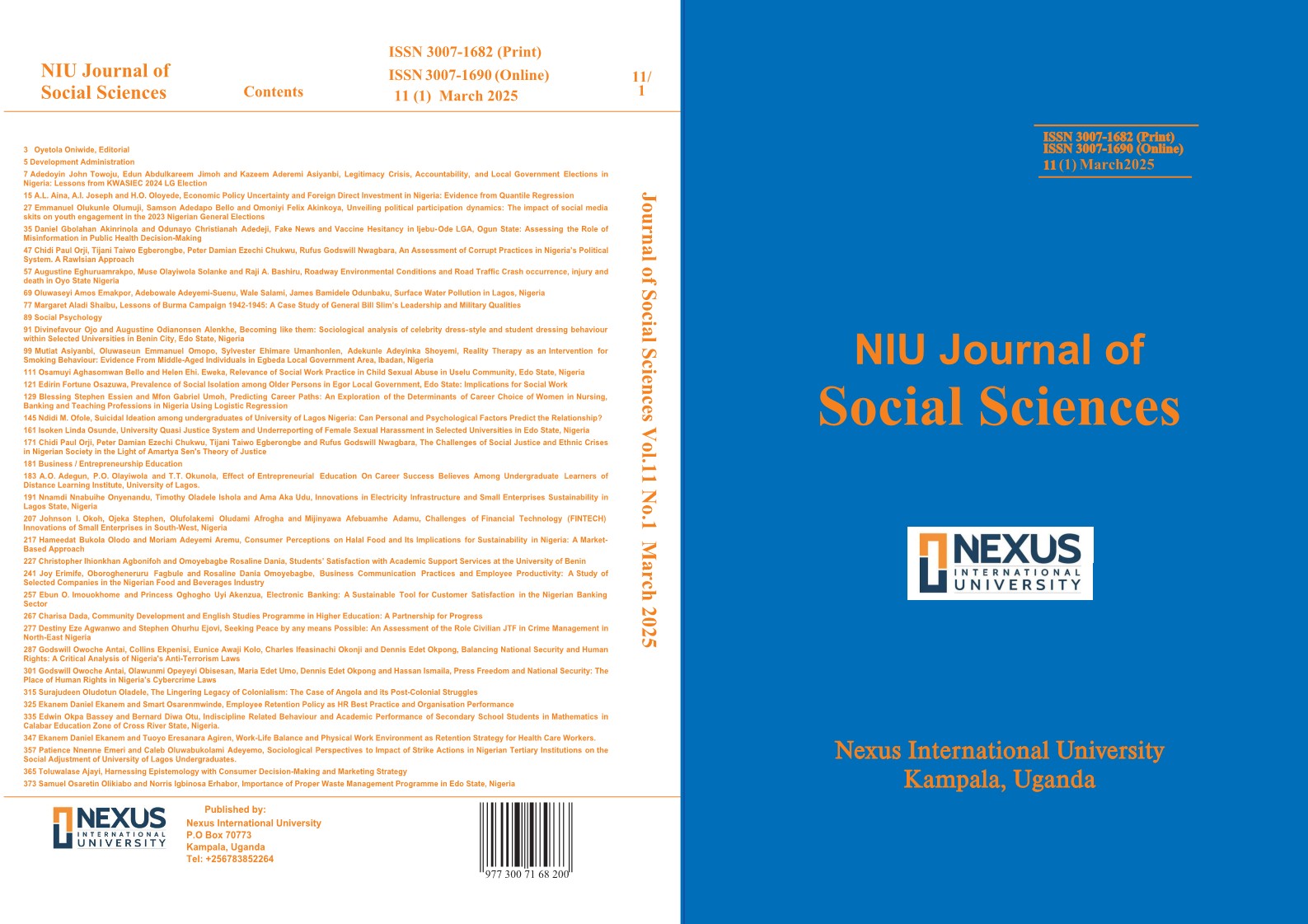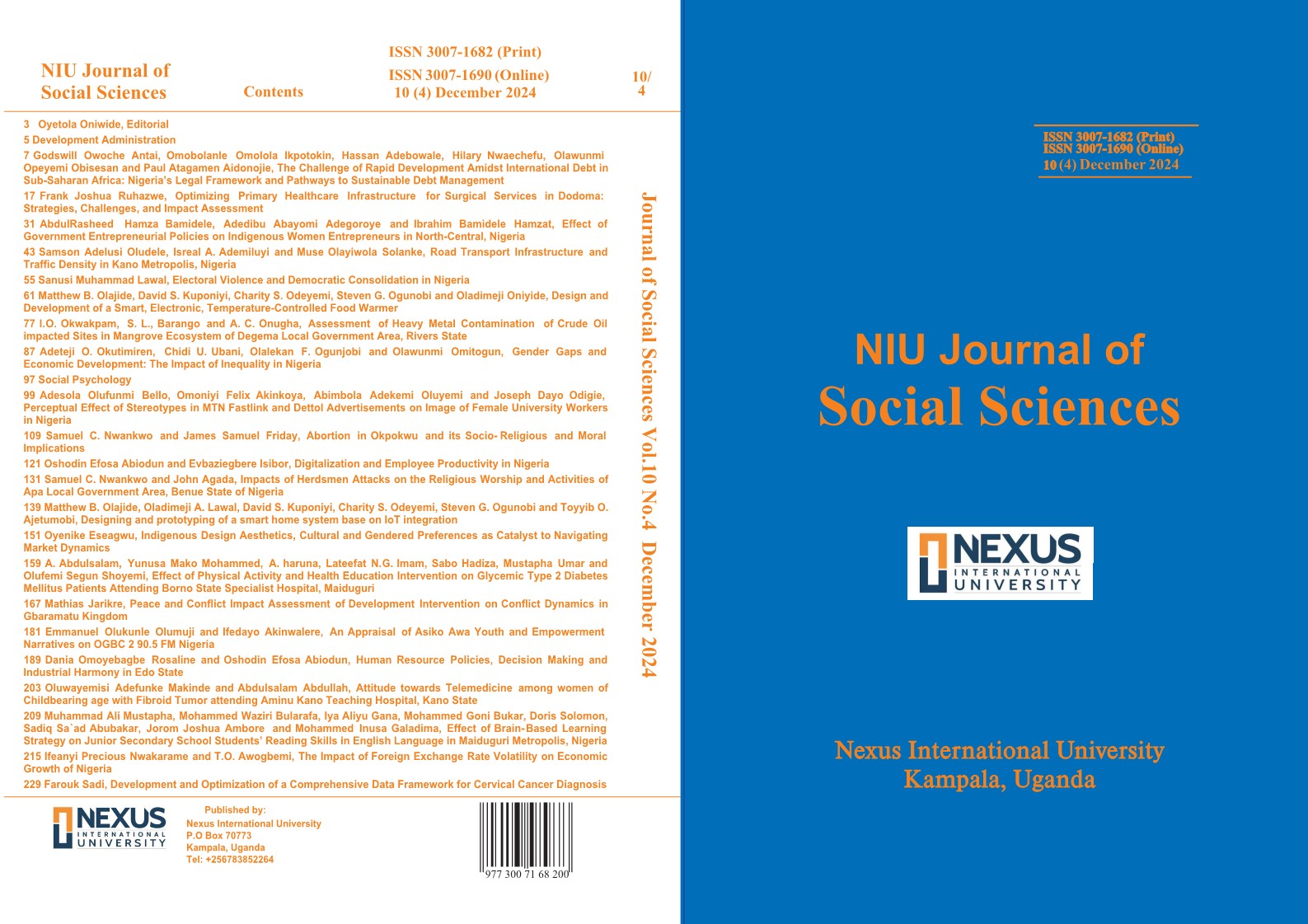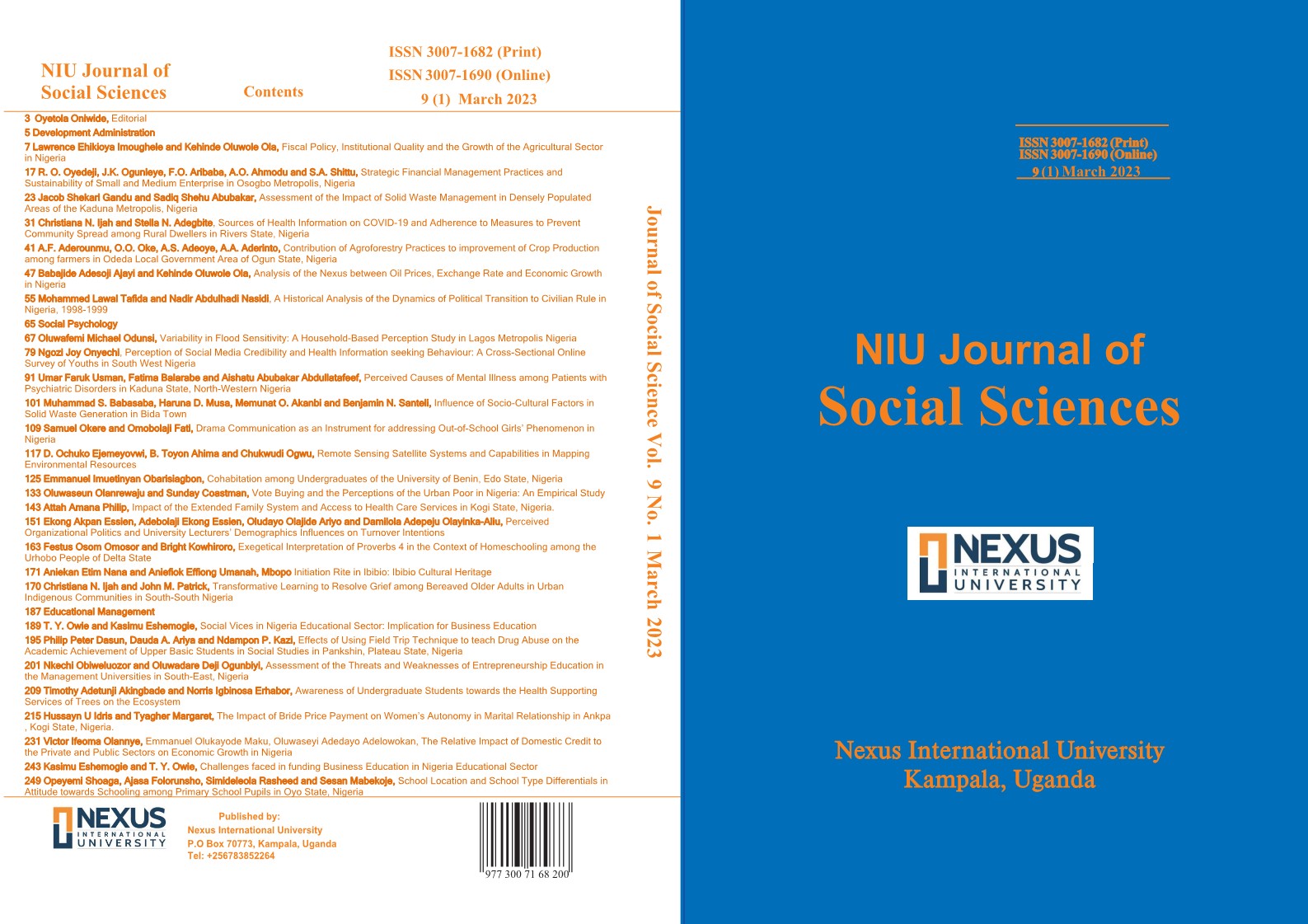 Vol 11 No 1 (2025)This edition of NIU Journal of Social Sciences focuses on Development Administration, Social Psychology as well as Business and Entrepreneurship Education.
